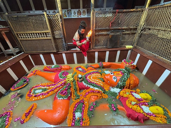 कुछ ही घंटे के बाद बृहस्पतिवार की रात को 2.15 बजे जलस्तर बढ़ने के बाद गंगाजी ने पुन: मंदिर में पहुंचकर बजरंग बली को स्नान कराया। बृहस्पतिवार को दिन में मां ने प्रस्थान किया। इस तरह देखा जाए तो श्री बड़े हनुमानजी पहली बार दो दिन और दूसरी बार आठ दिन तक जल शयन में रहे। तीसरी बार नाग पंचमी को तीसरी बार माँ गंगा ने हनुमान जी को स्नान कराया है। महंत बलवीर गिरी ने विधि विधान से मां गंगा और बजरंगबली का पूजन अर्चन किया।