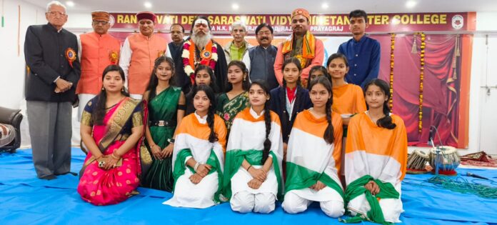 प्रयागराज l विद्या भारती से संबद्ध काशी प्रांत के रानी रेवती देवी सरस्वती विद्या निकेतन इंटर कॉलेज, राजापुर में 76वां गणतंत्र दिवस प्रधानाचार्य बांके बिहारी पांडे के संयोजन में बड़े ही हर्षोल्लास से आकर्षक सांस्कृतिक कार्यक्रमों एवं हिंदी, अंग्रेजी एवं संस्कृत के सारगर्भित भाषणों के साथ समारोह पूर्वक मनाया गया l कार्यक्रम में मुख्य अतिथि के रूप में अघोरपीठ महा शमशान हरिश्चंद्र घाट, काशी एवं बाबा सत्यनाथ मठ, कादीपुर के पीठाधीश्वर अवधूत उग्र चंदेश्वर कपाली जी महाराज तथा अध्यक्ष के रूप मे क्रिश्चियन कॉलेज के भौतिक विभाग के प्राध्यापक एवं विद्या भारती के पूर्व छात्र डॉ प्रेम प्रकाश सिंह तथा विशिष्ट अतिथि के रूप में विद्यालय समिति के अध्यक्ष डॉ आनंद कुमार श्रीवास्तव कोषाध्यक्ष शरद कुमार गुप्त, डॉक्टर विंध्यवासिनी प्रसाद त्रिपाठी, निदेशक बाल विकास संस्था एवं वरिष्ठ अधिवक्ता के. एन. कुमार सहित समस्त अतिथियों ने ध्वज फहराकर गणतंत्र दिवस समारोह की शुरुआत की l समस्त अतिथियों का स्वागत एवं सम्मान विद्यालय के प्रधानाचार्य बांके बिहारी पांडे ने किया l