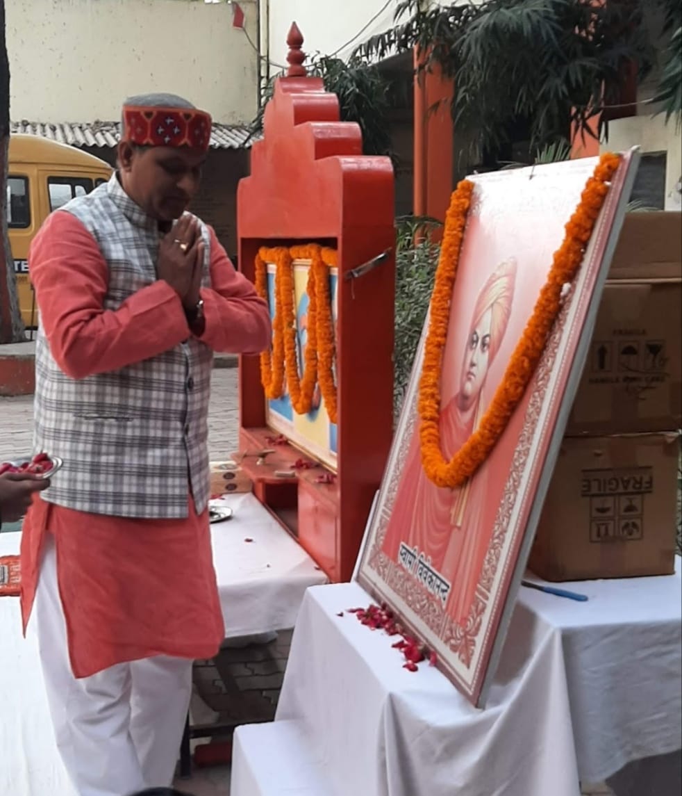 विद्यालय के संगीताचार्य एवं मीडिया प्रभारी मनोज गुप्ता ने बताया कि सर्वप्रथम प्रधानाचार्य, पूर्व छात्र परिषद एवं समस्त अध्यापक एवं अध्यापिकाओं ने स्वामी विवेकानंद जी के चित्र एवं प्रतिमा पर माल्यार्पण एवं पुष्पर्चन करके स्वामी विवेकानंद जी को अपने श्रद्धा सुमन अर्पित किए l इस अवसर पर प्रधानाचार्य बांके बिहारी पाण्डेय ने बताया कि हिंदुत्व के प्रचारक, हिंदू हृदय सम्राट, युवाओं के प्रेरणा स्रोत एवं आध्यात्मिक गुरु परम पूज्य स्वामी विवेकानंद जी की जयंती को राष्ट्रीय युवा दिवस के रूप में भी मनाया जाता है, उन्होंने स्वामी विवेकानंद जी के जीवन से संबंधित महत्वपूर्ण घटनाओं का उल्लेख करते हुए पूर्व छात्र छात्राओं से उनके बताए हुए कार्यों एवं नीतियों पर चलने का आह्वान किया, उन्होंने विवेकानंद जी के कहे वाक्य “उठो, जागो और तब तक मत रुको जब तक अपना लक्ष्य पूरा न कर लो” की विस्तृत व्याख्या की l उन्होंने स्वामी विवेकानंद जी की चार प्रमुख शिक्षाओं का उल्लेख करते हुए बताया कि स्वामी विवेकानन्द की शिक्षाएँ ज्ञान का खजाना हैं। वे आत्मविश्वास, ज्ञान की खोज, आत्म-सुधार, दूसरों की सेवा और सार्वभौमिक भाईचारे के महत्व पर जोर देते हैं।