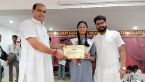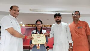 विद्यालय के संगीताचार्य एवं मीडिया प्रभारी मनोज गुप्ता ने बताया कि पूर्वी उत्तर प्रदेश क्षेत्र द्वारा आयोजित दो दिवसीय महोत्सव में गणित एवं संस्कृति ज्ञान की प्रतियोगिताएं आयोजित की गई थी, जिसमें आचार्य अभिषेक शर्मा एवं आचार्य जितेंद्र तिवारी के मार्गदर्शन में विद्यालय के भैया शांतम पाण्डेय तथा बहनें विदुषी चौधरी एवं अनन्या यादव ने संस्कृति ज्ञान प्रश्न मंच के किशोर वर्ग में 3 स्वर्ण पदक प्राप्त कर प्रथम स्थान तथा बहन स्वर्णा श्रीवास्तव ने वैदिक गणित पत्र वाचन में रजत पदक एवं भैया आकाश सिंह ने कांस्य पदक, इसी प्रकार वैदिक गणित प्रश्न मंच के तरुण वर्ग में भैया मिथिलेश यादव, विनीत यादव एवं भोजराज ने कांस्य पदक एवं वैदिक गणित प्रदर्श में भैया अश्विन चौधरी ने कांस्य पदक प्राप्त कर विद्यालय सहित अपने परिवार तथा पूरे पूर्वी उत्तर प्रदेश क्षेत्र का मान बढ़ाया l मनोज गुप्ता ने बताया कि प्रथम स्थान प्राप्त प्रतिभागी अब अखिल भारतीय प्रतियोगिता जो सरस्वती विद्या मंदिर सीतामढ़ी बिहार में आयोजित होगी उसमें भाग लेंगे l