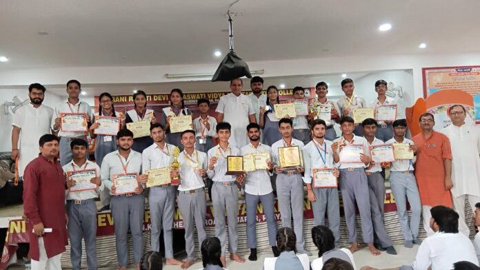 प्रयागराज l विद्या भारती से संबद्ध काशी प्रांत के रानी रेवती देवी सरस्वती विद्या निकेतन इंटर कॉलेज राजापुर, प्रयागराज के मेधावी भैया बहनों ने प्रधानाचार्य बांके बिहारी पाण्डेय के कुशल नेतृत्व में पंडित दीनदयाल उपाध्याय सरस्वती विद्या मंदिर, लखीमपुर खीरी में आयोजित क्षेत्रीय गणित मेला एवं संस्कृति महोत्सव 2025 में 3 स्वर्ण,1 रजत एवं 4 कांस्य पदक प्राप्त कर विद्यालय सहित पूरे पूर्वी उत्तर प्रदेश क्षेत्र का मान बढ़ाया l उक्त प्रतियोगिता में सभी सफल भैया/ बहनों को प्रधानाचार्य बांके बिहारी पाण्डेय ने वंदना सभा में पुरस्कृत करके उनका सम्मान किया l