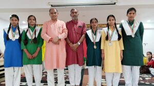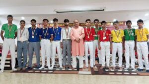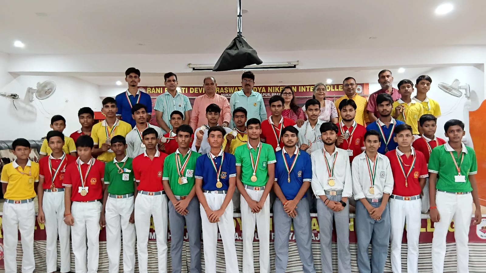 प्रयागराज l विद्या भारती से संबद्ध काशी प्रांत के रानी रेवती देवी सरस्वती विद्या निकेतन इंटर कॉलेज राजापुर प्रयागराज के खिलाड़ी भैया बहनों ने विद्यालय के प्रधानाचार्य बांके बिहारी पाण्डेय के कुशल मार्गदर्शन में सरस्वती विद्या मंदिर सेक्टर क्यु अलीगंज लखनऊ में विद्या भारती द्वारा आयोजित 36वीं क्षेत्रीय बास्केटबॉल एवं कराटे प्रतियोगिता बालक वर्ग के अंडर 14, अंडर 17, एवं अंडर 19 तथा बालिका वर्ग के अंडर 17 तथा कराटे में मोंटी कुमार ने अंडर-19 में विजयी होकर फाइनल में जगह बनाई l खिलाड़ी भैया बहनों की इस अभूतपूर्व सफलता पर प्रधानाचार्य बांके बिहारी पाण्डेय ने वंदना सभा में समस्त खिलाड़ी भैया बहनों को प्रमाण पत्र एवं मेडल देकर सम्मानित करते हुए उनके उज्जवल भविष्य की प्रार्थना करते हुए अखिल भारतीय प्रतियोगिता में स्थान बनाने की कामना की l