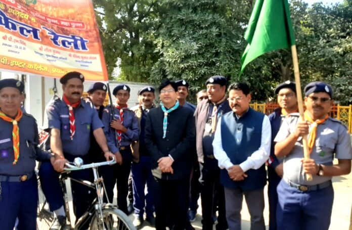 प्रयागराज।महा कुम्भ स्वच्छ कुम्भ सुरक्षित कुम्भ कार्यक्रम के अन्तर्गत जनपथ स्तर पर भारत स्काउट और गाइड जिला संस्था प्रयागराज द्वारा 6 दिसंबर दिन शुक्रवार को विभिन्न गतिविधियों का आयोजन किया जा रहा है। इस क्रम में आज सड़क सुरक्षा जागरूकता अभियान के तहत जनपद के विभिन्न कालेजों के स्काउट और गाइडों द्वारा अपने स्काउट मास्टर्स और गाइड कैप्टनों के नेतृत्व में साइकिल रैली निकाली गई जो के पी इण्टर कालेज से हनुमान मंदिर होते हुए होते हुए पुनः के पी इंटर कालेज में समाप्त हुई।