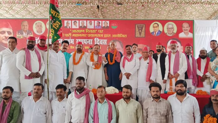 श्री कटरा रामलीला कमेटी के प्रांगण में जुटे समाजवादी पार्टी के पदाधिकारियों व नेताओं ने संविधान मानस्तम्भ स्थापना दिवस “आरक्षण दिवस” पर पीडीए और बाबा साहब के संविधान की प्रतियां हाथों में लेकर उसकी रक्षा और पीडीए समाज के साथ केन्द्र सरकार व प्रदेश सरकार के सौतेले व्यवहार का डटकर कर मुक़ाबला करने का संकल्प लिया। कार्यक्रम में मुख्य अतिथि प्रेम प्रकाश वर्मा रहे तो कार्यक्रम की अध्यक्षता महानगर अध्यक्ष सैय्यद इफ्तेखार हुसैन व संचालन महानगर महासचिव रवीन्द्र यादव रवि ने किया।दिलीप चौरसिया व राकेश वर्मा के संयोजन में हुए आरक्षण दिवस सम्मेलन में वक्ताओं ने भाजपा सरकारों द्वारा बाबा साहब डॉ भीमराव आंबेडकर के संविधान को खत्म करने की साज़िश का आरोप लगाते हुए कार्यकर्ताओं से संविधान और पीडीए के हक़ हूक़ूक़ की आवाज़ बन कर माननीय अखिलेश यादव के साथ कदम दर कदम साथ निभाने की बात कही वहीं सभी ने एकजुटता का परिचय देते हुए शपथ ली के भाजपा को दो हज़ार सत्ताईस में प्रदेश से उखाड़ फेंकना के लिए समाज के दबे कुचले पिछड़े दलित वंचित अल्पसंख्यक समुदाय के हक़ के लिए हमेशा उनके हर सुख दुख के भागीदार बनेंगे। कार्यक्रम में सैय्यद इफ्तेखार हुसैन , रवीन्द्र यादव रवि ,शहर दक्षिण के पूर्व विधायक हाजी परवेज़ अहमद ,मोईन हबीबी ,राजेश गुप्ता ,संदीप यादव ,शशांक त्रिपाठी,महबूब उस्मानी , तारिक सईद अज्जू , बब्बन द्वबे ,मोहम्मद अज़हर ,शकील अहमद ,मोहम्मद शारिक ,मयंक यादव जोंटी ,दिलीप चौरसिया ,राकेश वर्मा , महेंद्र निषाद , रमाकांत पटेल ,कन्हैया चौरसिया ,ओम प्रकाश पाल ,नेम यादव ,रवि गुप्ता , बब्लू रावत ,जय भारत यादव ,नन्हें मंसूरी ,इंदू यादव ,मंजू यादव ,यथांश केसरवानी ,रेहान अहमद , चंद्रजीत कुशवाहा ,अजय यादव पार्षद समेत बड़ी संख्या में सपा जन उपस्थित रहे।