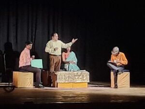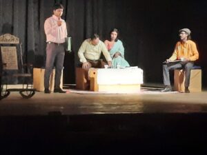 नाटक में सतीश तिवारी (गोयल), अमर सिंह (वकील सक्सेना), प्रत्यूष वर्सने (पत्रकार तनेजा), दिलीप श्रीवास्तव (रामसेवक), नम्रता सिंह (श्रीमती गोयल) ने अपने अभिनय से दर्शकों की खूब प्रशंसा अर्जित की। प्रकाश योजना टोनी सिंह, संगीत व सहयोगी निर्देशन अमर सिंह, नेपथ्य कर्म कुमार अभिनव, सिद्धांत चंद्रा , शिवा, हीर, शीरी आदि था।