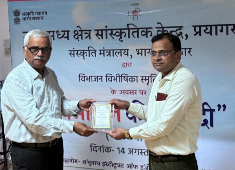 प्रयागराज जनपद के उत्कृष्ट संस्थान, शम्भूनाथ इंस्टिट्यूट ऑफ़ फार्मेसी मे 14 अगस्त 2025 को विभाजन विभीषिका स्मृति दिवस का आयोजन किया गया जिसमे 1947 में विभाजन के दौरान भारतीयों के कष्टों और बलिदानों के बारे मे बताया गया l आयोजन का शुभारम्भ फार्मेसी संकाय के निदेशक प्रो•(डॉ•) अरविन्द कुमार श्रीवास्तव, श्री वीरेंद्र पाठक पत्रकार ANI न्यूज एजेन्सी प्रयागराज रीजन, श्री शैलेन्द्र कुमार, कार्यक्रम समन्वयक,उत्तर मध्य क्षेत्र सांस्कृतिक केन्द्र, प्रयागराज