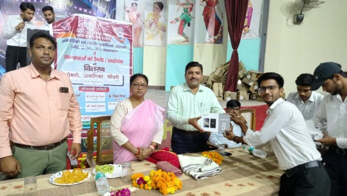 उत्तर प्रदेश सरकार की ‘सेवा, सुरक्षा और सुशासन की नीति’ के 8 वर्ष पूर्ण होने के उपलक्ष्य में अनामिका चौधरी निषाद प्रदेश मंत्री भारतीय जनता पार्टी उत्तर प्रदेश एवं प्रभारी चंदौली ने अभियांत्रिकी एवं ग्रामीण प्रौद्योगिकी संस्थान (आई.ई.आर.टी.), प्रयागराज में शासन द्वारा घोषित डिप्लोमा एंव डिग्री डिवीजन के 926 छात्र छात्राओं को टैबलेट/स्मार्टफोन वितरण के क्रम में छात्र छात्राओं को को टैबलेट वितरित कर उनके उज्जवल भविष्य की कामना किया।