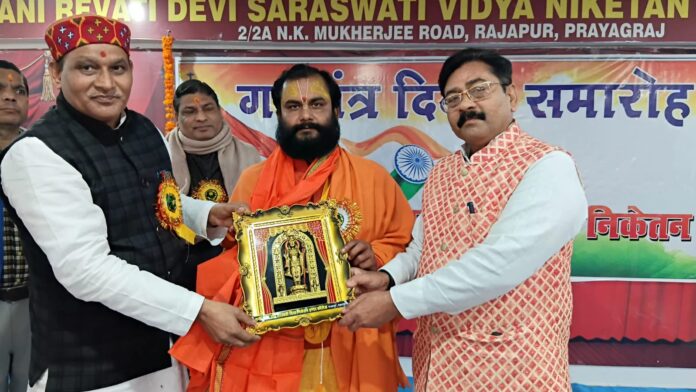 विद्या भारती से संबद्ध काशी प्रांत के रानी रेवती देवी सरस्वती विद्या निकेतन इंटर कॉलेज, राजापुर, प्रयागराज में 77वां गणतंत्र दिवस समारोह प्रधानाचार्य बांके बिहारी पाण्डेय के मार्गदर्शन में हर्षोल्लास एवं सांस्कृतिक गरिमा के साथ मनाया गया। इस अवसर पर विद्यार्थियों द्वारा प्रस्तुत देशभक्ति से ओतप्रोत कार्यक्रमों ने सभी को भावविभोर कर दिया।