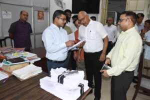 निरीक्षण के दौरान जिलाधिकारी ने न्यायालय कक्ष, राजस्व सहायक कक्ष, ईआरके, शिकायत, डिस्पैच कक्ष, अभिलेखागार, न्याय सहायक कक्ष, ई-डिस्ट्रिक्ट, कंट्रोल रूम, शस्त्र कार्यालय, अभिलेखागार कक्ष सहित अन्य पटल, अनुभागों का निरीक्षण करते हुए संबंधित अधिकारियों, कर्मचारियों को आवश्यक मार्गदर्शन दिए। उन्होंने न्यायालय कक्ष के छत की फारसेलिंग की मरम्मत कराये जाने तथा अधिकारियों, कर्मचारियों के पटल पर उनका नाम, पदनाम, जॉबचार्ट लगाने के निर्देश दिए है। उन्होंने रिकार्ड रूम में सबसे पुराने रिकार्ड एवं रिकार्डों की बिडिंग की जानकारी लेते हुए निर्धारित समयसीमा से पुराने रिकार्डों को बिडआउट कराये जाने के निर्देश दिए है। जिलाधिकारी ने एक सिस्टम डेवलप किये जाने के लिए कहा है, जिससे की पत्रों पर कार्यवाही की प्रगति की स्थिति का सम्पूर्ण ब्यौरा उपलब्ध हो सके तथा एक पटल पर लम्बे समय तक पत्र डम्प न रहे। उन्होंने सभी अधिकारियों व कर्मचारियों को अपने दायित्वों का ईमानदारी के साथ पूर्ण मनोयोग के साथ निर्वहन करने का निर्देश दिया है।