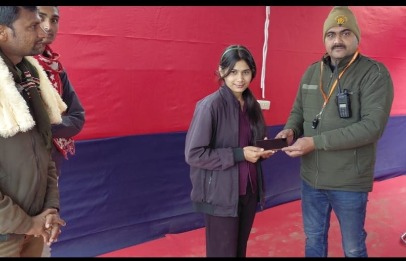 1- कशिश यादव पुत्री रवि शंकर पता डोकरिया मध्य प्रदेश, का संगम स्नान के दौरान मोबाइल फोन कहीं गिर गया, कशिश द्वारा तत्काल संगम नोज पर अधिकारियों के साथ ड्यूटी पर मौजूद आरक्षी धर्मेंद्र तिवारी वाचक कार्यालय माघ मेला से बताया गया कि मेरा फोन कहीं गिर गया है, आरक्षी धर्मेंद्र तिवारी द्वारा तत्काल 1 घंटे के अंदर फोन को खोज कर, संगम नोज पर कशिश को फोन सुपुर्द किया गया |