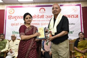विशिष्ट अतिथि इंजी० हर्षवर्धन वाजपेयी ने अपने संबोधन में कहा कि “हिन्दुस्तानी एकेडेमी से मेरा बहुत पुराना नाता है। मेरे परदादा की पुस्तक का प्रकाशन इसी एकेडेमी से हुआ था और उसके विमोचन कार्यक्रम में मैं बचपन में उनके साथ आया था।”