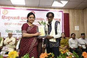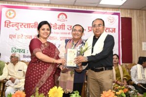विशिष्ट अतिथि इंजी० हर्षवर्धन वाजपेयी ने अपने संबोधन में कहा कि “हिन्दुस्तानी एकेडेमी से मेरा बहुत पुराना नाता है। मेरे परदादा की पुस्तक का प्रकाशन इसी एकेडेमी से हुआ था और उसके विमोचन कार्यक्रम में मैं बचपन में उनके साथ आया था।”