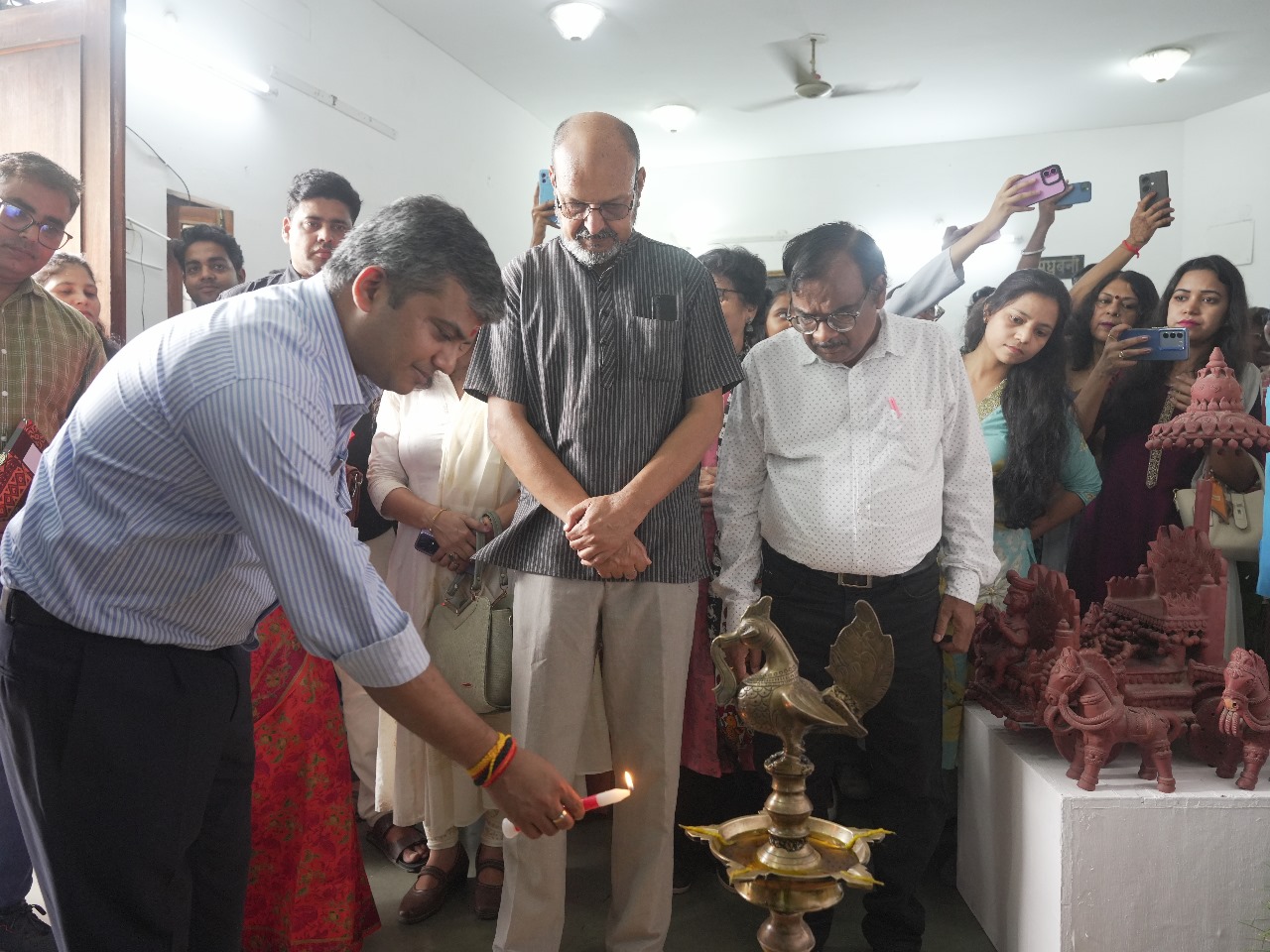 मुख्य अतिथि जिलाधिकारी प्रयागराज श्री मनीष कुमार वर्मा, विशिष्ट अतिथि केंद्रीय ललित कला अकादमी के क्षेत्रीय सचिव श्री देवेंद्र त्रिपाठी एवं उत्तर मध्य क्षेत्र सांस्कृतिक केंद्र के निदेशक श्री सुदेश शर्मा ने संयुक्त रूप से दीप प्रज्वलन कर प्रदर्शनी का शुभारंभ किया।