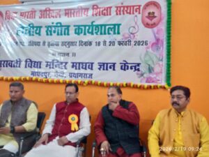 प्रयागराज। सरस्वती विद्या मंदिर माधव ज्ञान केंद्र में तीन दिवसीय क्षेत्रीय संगीत कार्यशाला का शुभारंभ प्रधानाचार्य अजय कुमार मिश्र के संयोजन में हुआ। यह विद्यालय विद्या भारती से संबद्ध काशी प्रांत के अंतर्गत संचालित है।