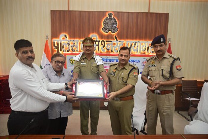 प्रयागराज। उ0र प्र0 अपराध निरोधक समिति, लखनऊ की प्रयागराज शाखा द्वारा एक गरिमामय समारोह में प्रयागराज यातायात पुलिस के अधिकारियों एवं कर्मचारियों को अंगवस्त्र, स्मृति चिन्ह व प्रशंसा पत्र प्रदान कर पुलिस लाइन सभागार में सम्मानित किया गया।
