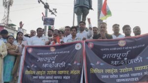 सुभाष चौराहे पर सभी व्यापारी सफेद कपड़ो में एकत्रित हुए एवं मृतक आत्माओं की शांति की प्रार्थना की । श्रद्धांजलि सभा में महामंत्री पवन जी श्रीवास्तव अभिषेक सक्सेना, पूनम द्विवेदी, पूनम कुशवाहा, ललिता मलिक, सूक्ति माथुर , रंजना गुलाटी , अनीता मिश्रा, सरोज रंजन , बी के शर्मा , अनिल गुप्ता, सौरभ माथुर , रोहित विश्वकर्मा डॉ रॉबिन साहू, बीरू सोनकर,अजय गुप्ता,सुनील कुशवाहा,दीपू सोनकर, शुभम कुमार, अचल सोनकर , मनीष कपूर आदि रहे।