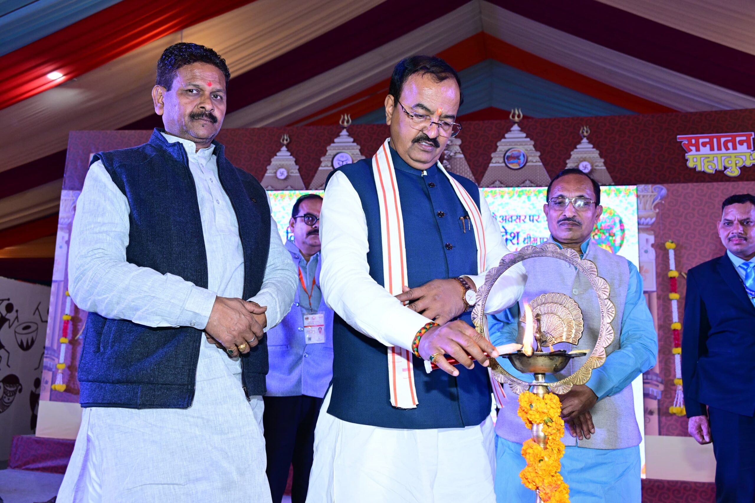 महाकुंभनगर के कला कुंभ परिसर, सेक्टर-07 में उत्तर प्रदेश स्थापना दिवस का मुख्य कार्यक्रम आयोजित किया गया। इस अवसर पर प्रदेश के उप मुख्यमंत्री श्री केशव प्रसाद मौर्य ने मुख्य अतिथि के रूप में प्रतिभाग किया। उन्होंने कार्यक्रम को संबोधित करते हुए कहा कि उत्तर प्रदेश, अपनी सांस्कृतिक धरोहर और समृद्ध परंपराओं के साथ विकास की नई ऊंचाइयों को छू रहा है। इस स्थापना दिवस की थीम ‘विकास व विरासत प्रगति पथ पर उत्तर प्रदेश’ राज्य की प्रगति को नई दिशा देने का संकल्प है।