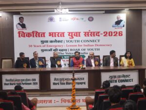 यूथ कनेक्ट सत्र में Shuruaat Foundation के संस्थापक एवं यूथ आइकॉन अभिषेक शुक्ला ने युवाओं को संबोधित करते हुए अपने सामाजिक कार्यों की वीडियो प्रस्तुति साझा की। उन्होंने कहा कि समाज के प्रत्येक वर्ग को शिक्षित करना युवाओं की जिम्मेदारी है। चाहे झुग्गी-झोपड़ियों में रहने वाले बच्चे हों या महलों में—हर परिस्थिति में सभी को शिक्षित करना ही विकसित भारत के निर्माण की दिशा में महत्वपूर्ण कदम है।