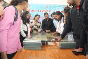 राजकीय पाण्डुलिपि पुस्तकालय में महाविद्यालय के छात्र-छात्राओं को पाण्डुलिपि सम्पदा प्रदर्शनी का अवलोकन कराया गया। प्रदर्शनी में ऋग्वेद, यजुर्वेद, सामवेद, भागवत पुराण, विष्णु पुराण, चरक संहिता सहित फारसी भाषा में लिखित ग्रन्थों को प्रदर्शित किया गया। इस अवसर पर उपस्थित छात्र/छात्राओ को पुस्तकालय में संरक्षित मूल पाण्डुलिपियों को भी दिखाया गया जिसमें वासुदेव पूजा पद्वति (ताड़पत्र),3*2 इंच की भगवत गीता, कबीर दास की साखी, भगवान श्री रामचन्द्र की वंशावली सहित फारसी भाषा में लिखित अल कुरान, आइने अकबरी आदि प्रमुख थी।