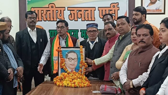 भारत रत्न बाबा साहब डॉ भीमराव अंबेडकर के महा परिनिर्वाण दिवस पर भाजपा कार्यकर्ताओं ने उन्हें याद कर उन्हें नमन किया। इस अवसर पर प्रयागराज महानगर के सभी 15 मंडलों के समस्त 1216 बूथों पर बाबा साहब के चित्र प्रतिमा पर माल्यार्पण कर उन्हें नमन किया गया। महानगर अध्यक्ष राजेंद्र मिश्र के नेतृत्व में कार्यकर्ताओं ने हाईकोर्ट चौराहा स्थित डॉ भीमराव अंबेडकर की प्रतिमा पर माल्यार्पण कर उनके कृतित्व को याद किया उन्हें नमन किया। इस मौके पर महानगर अध्यक्ष ने कहा कि आज देश के नागरिकों को जो मौलिक अधिकार प्राप्त हैं वे बाबा साहब द्वारा देश को दिए गए संविधान का परिणाम है। देश उनका हमेशा ऋणी रहेगा। महापौर गणेश केसरवानी ने कीडगंज स्थित कैंप कार्यालय में बाबा साहब के चित्र पर माल्यार्पण किया। इस अवसर पर महापौर ने कहा कि युगों तक बाबा साहब का योगदान याद रखा जायेगा। भारत के विकास में संविधान का विशेष योगदान है और संविधान बाबा साहब की देन है। महामंत्री रवि केसरवानी, प्रवक्ता राजेश केसरवानी के नेतृत्व में कार्यकर्ताओं ने मुट्ठीगंज व खुल्दाबाद मंडल में डॉ भीमराव अंबेडकर के चित्र पर माल्यार्पण किया। विश्वविद्यालय, प्रीतम नगर, शिवकुटी, भारद्वाज, वेणीमाधव, सिविल लाइन, नैनी, राजरूप पुर आदि मंडलों में एवं बूथों पर बाबा साहब के चित्र पर माल्यार्पण कर उन्हें नमन किया गया। कुंज बिहारी मिश्रा, वरुण केसरवानी राजेश केसरवानी मनोज कुशवाहा, राजेश पटेल, दीप द्विवेदी, राजेश गोंड, संजय सिंह, नवाब खान, आनंद जायसवाल, राकेश भारती, आनन्द सोनकर,मीडिया प्रभारी विवेक मिश्रा, संजय श्रीवास्तव, रमेश पासी, प्रशांत शुक्ल, आनन्द दुबे, नटवर लाल, अजय हेला, शिवा त्रिपाठी, प्रमोद मोदी, राजू पाठक, विवेक गौड़,अनेकों कार्यकर्ता उपस्थित रहे।